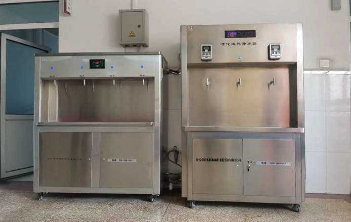 國林校園飲水臺采用熱交換原理,智能控水控溫,節(jié)約能源,可同時產(chǎn)熱水、溫水、直飲水。校園開水龍頭加裝刷卡器,老師憑卡取水,無燙傷學生之虞。
